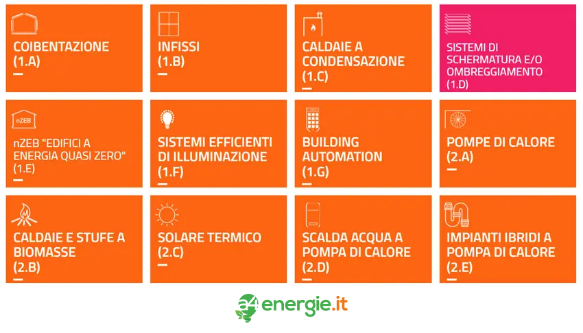 - 1.D – Implementazione di dispositivi di protezione solare per aperture trasparenti, sia fissi che mobili, forniti da ESCo (Energy Service Company)
